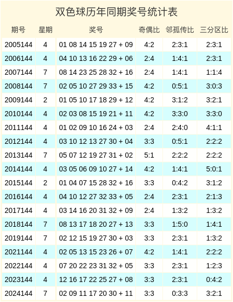 蓝球分析:积年同时中蓝球的大小比为10:9,本期展望开出少量蓝球号码:06。
